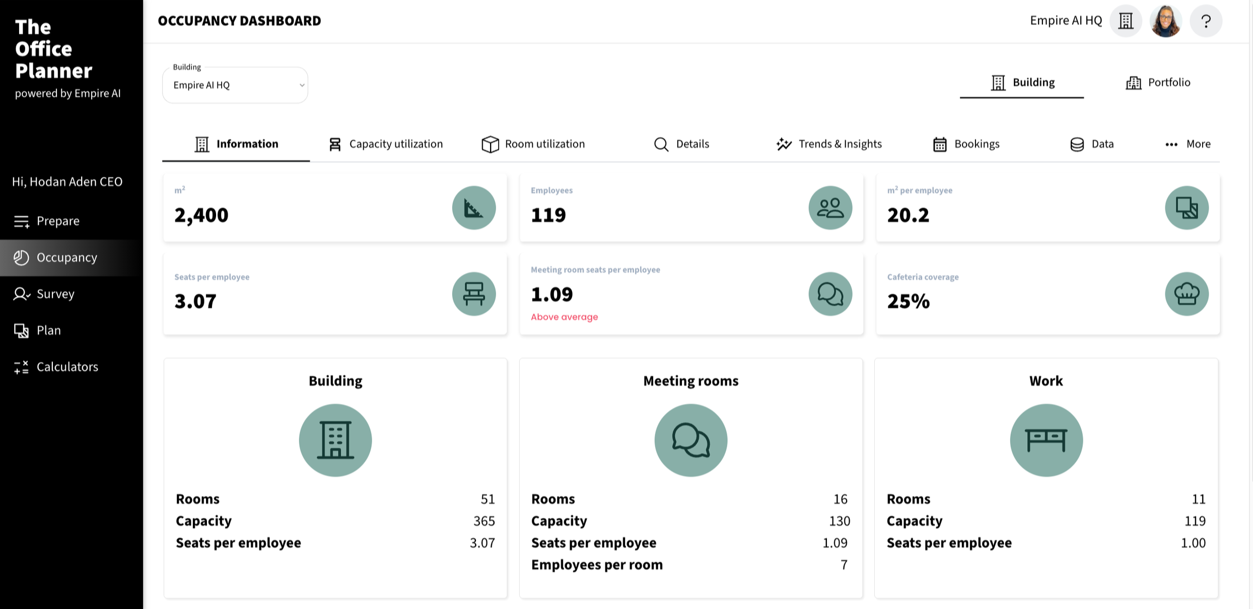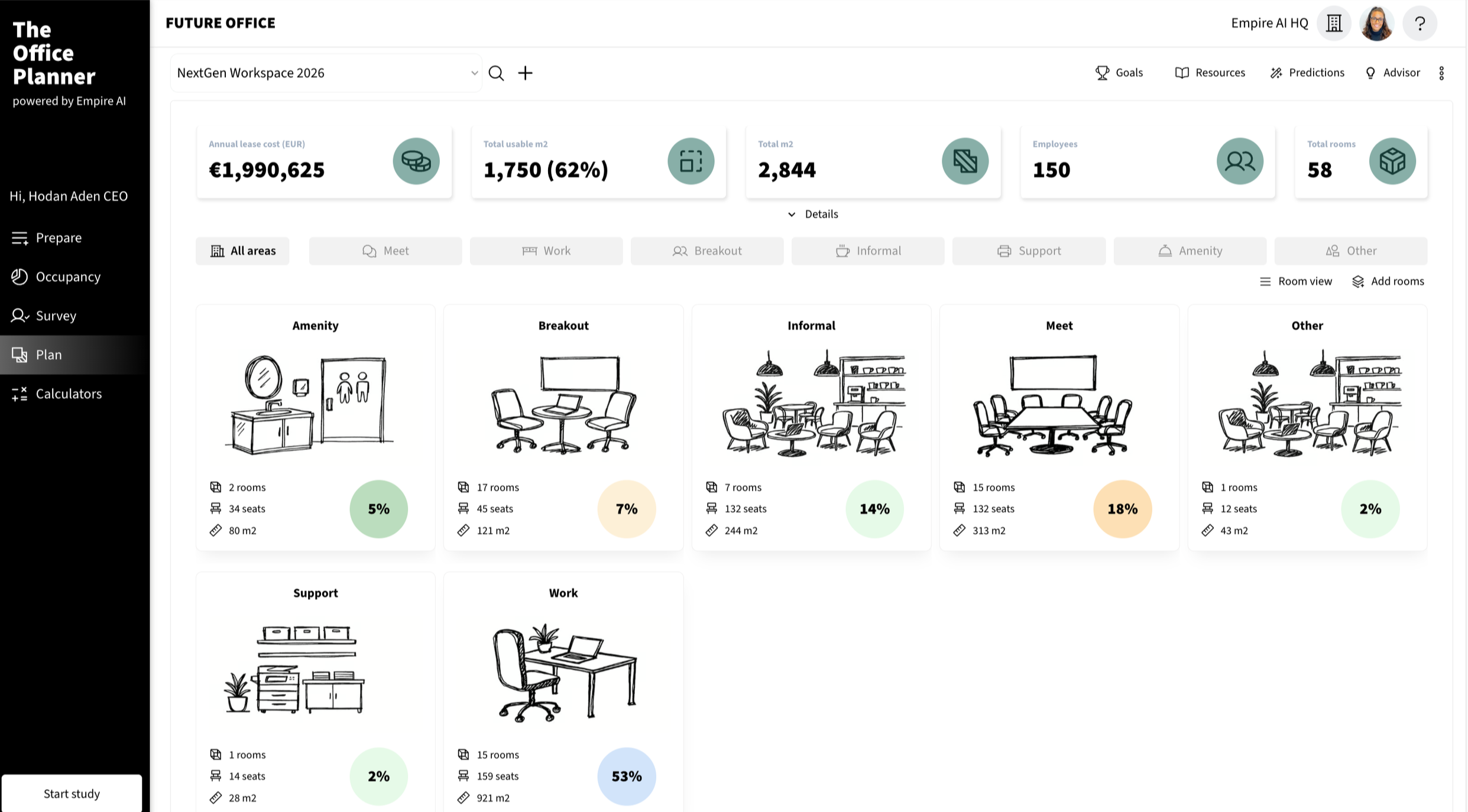 Our platform turns workspace data into predictions you can trust, making it clear what to build, how much you need, and why before the office is built.